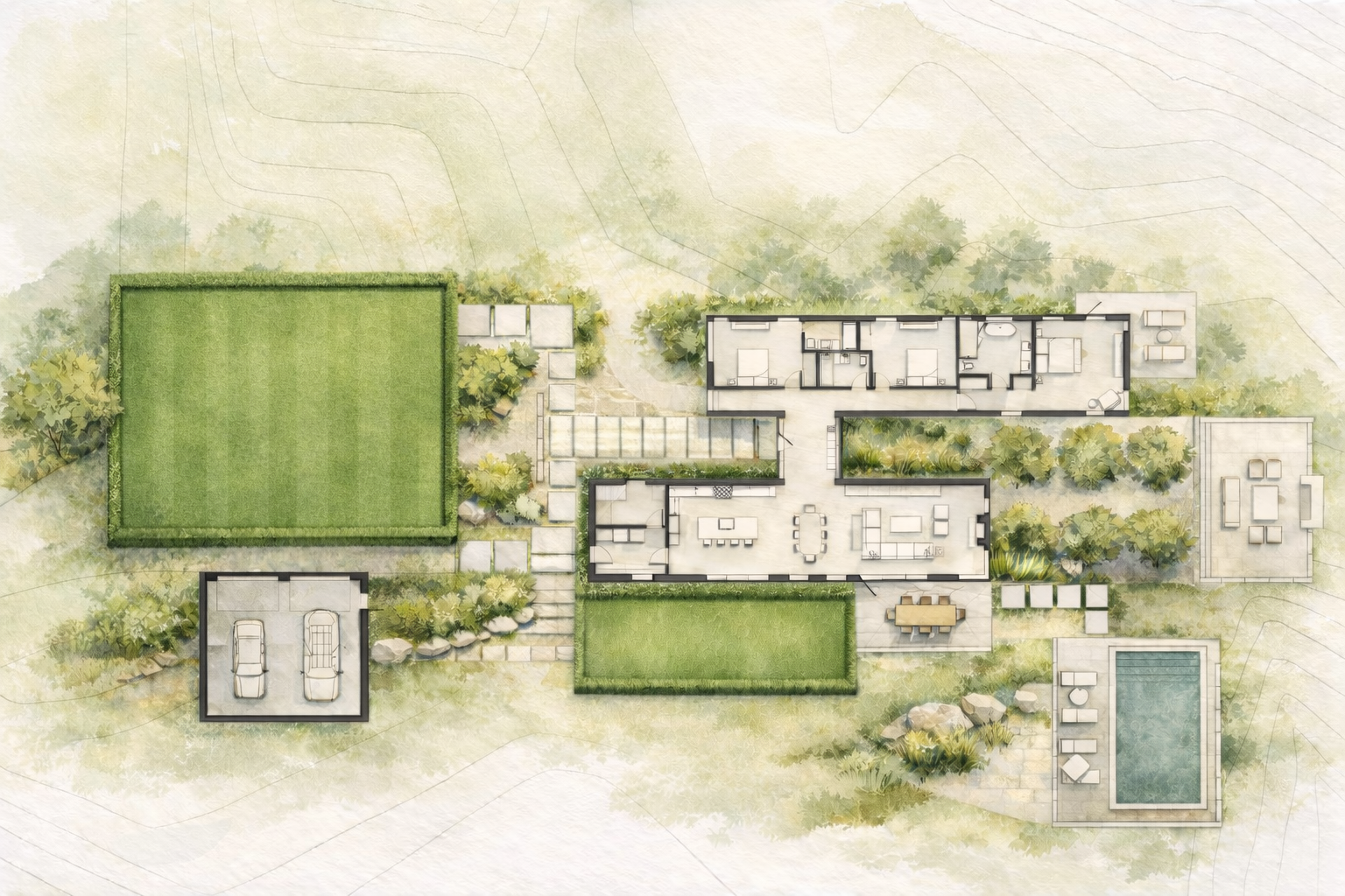 Designed for empty nesters seeking a home that would support graceful aging without sacrificing architectural ambition, this 3,500-square-foot residence draws inspiration from the restrained elegance of 17th-century Cape Dutch architecture.