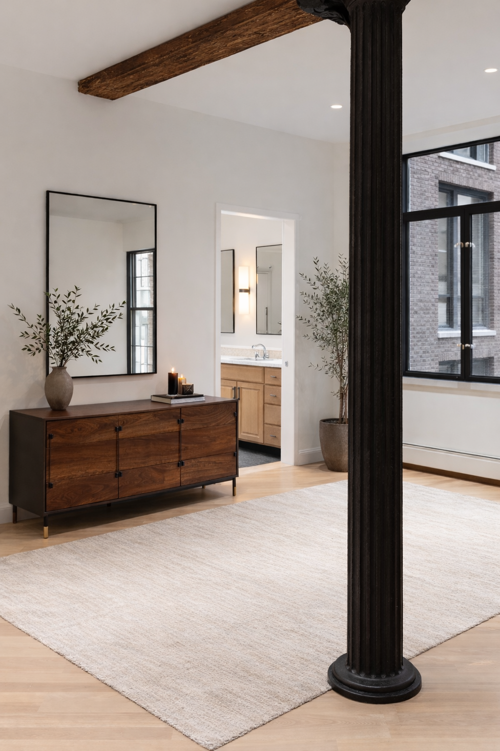 Housed within a former vegetable factory built in 1883, this half-floor, 3,500 square foot loft underwent a complete gut renovation, conceived, designed, and executed by VMAD after extensive interviews with the loft-home’s owners.